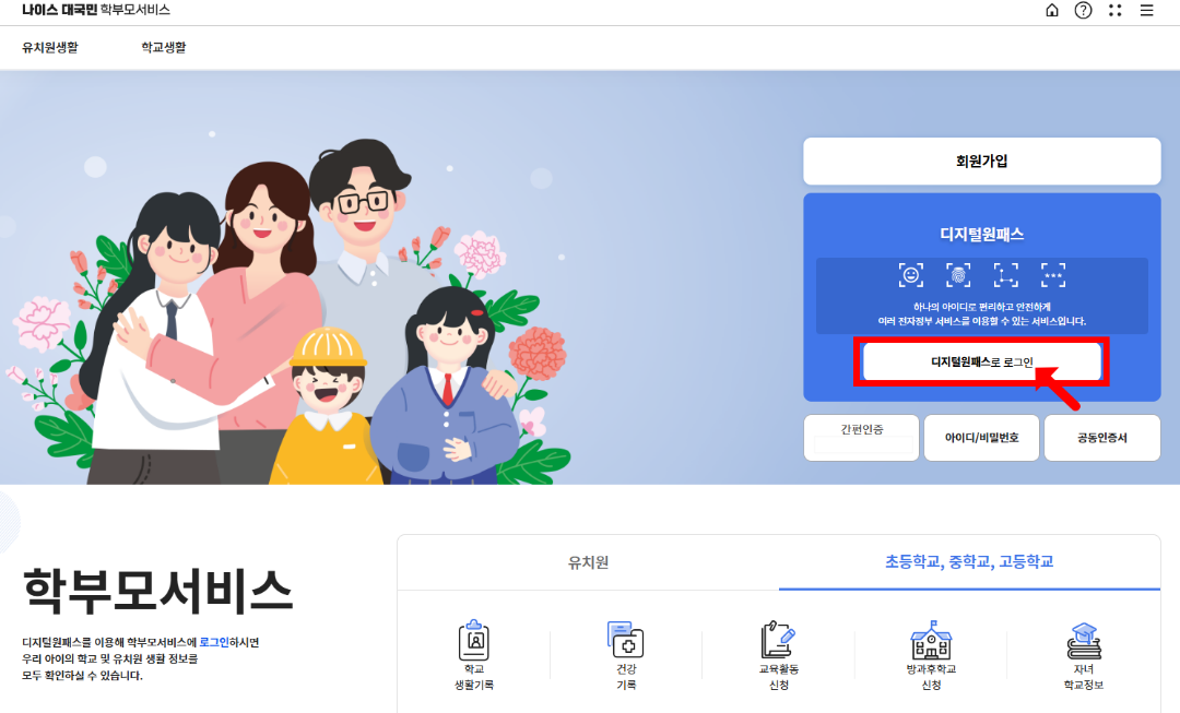 나이스 학부모서비스를 처음 이용하시는 경우, 회원가입이 필요합니다.